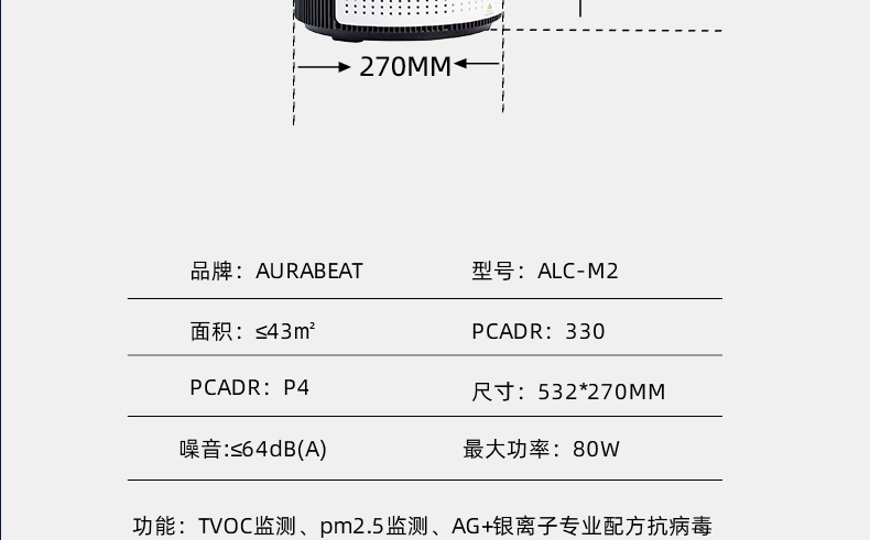AURABEAT AG+专业配方银离子抗病毒空气净化器(ALC-M2)