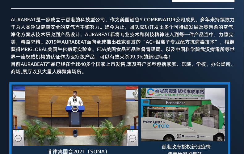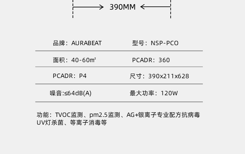 AURABEAT AG+专业配方银离子抗病毒空气消毒机(NSP-PCO)